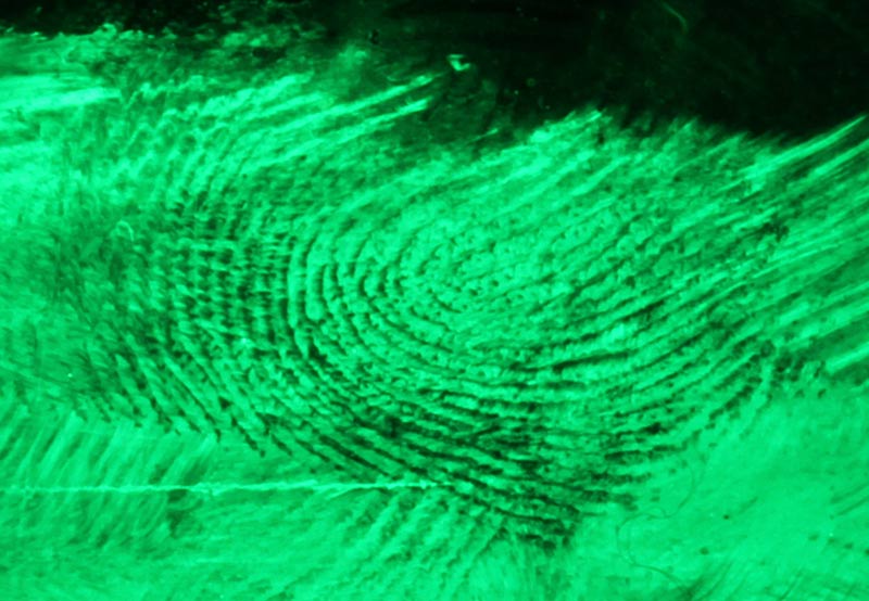 Odciski ujawnione Hungarian Red wykazują fluorescencję w świetle o długości fali 515-560 nm.