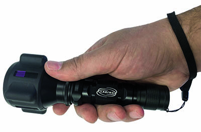 Latarka Torch Light UVG3 2.0 floodlight w walizce. Latarka została zaprojektowana tak, aby spełniać najsurowsze wymagania przemysłu lotniczego i kosmicznego. Maksymalna intensywność wynosi 5 000 μW/cm² w odległości 38,1 cm.