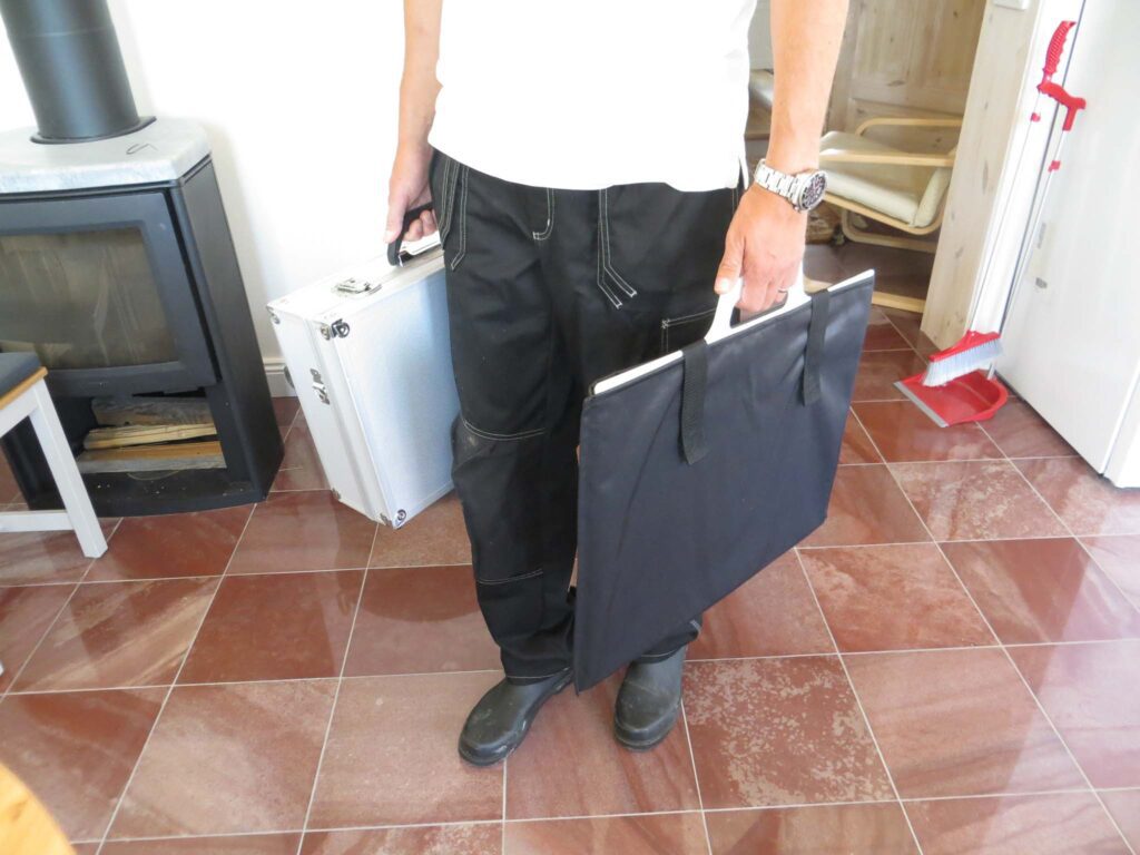 2. Jedna lekka walizka transportowa z plastykowym spłaszczaczem